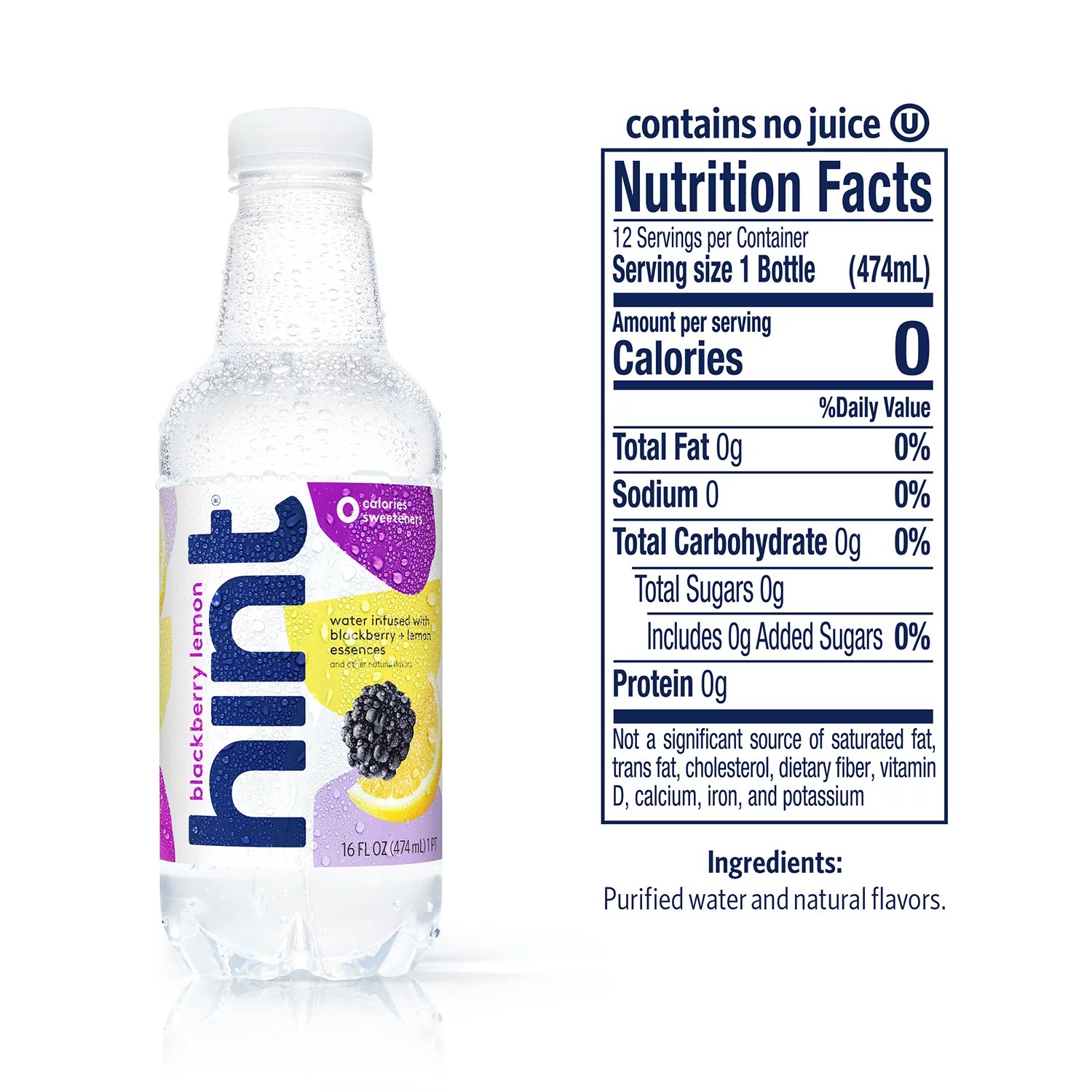 Amazon.com : Hint Water Raspberry (Pack of 12), 16 Ounce Bottles, Pure ... This item: Hint Water Raspberry (Pack of 12), 16 Ounce Bottles, Pure Water Infused with Raspberry, Zero Sugar, Zero Calories, Zero Sweeteners, Zero Preservatives, Zero Artificial Flavors $14.28 ($0.07/Fl Oz) Watermelon Water 16 oz. | Hint watermelon hint ® water Pure flavored water, with delicious watermelon and other natural flavors one case of twelve 16-oz. bottles zero diet sweeteners zero calories zero preservatives vegan, gluten-free, kosher Daily values are based on a 2,000 calorie diet. vegan friendly gluten free sugar free preservative free no diet sweeteners kosher Hint Water: Official Website Fruit-infused water delivered straight. to your door. Deliciously simple. shop now. Shop at drinkhint.com. and you'll find: New customer offer - 36 bottles for $36 plus free shipping! Special and exclusive online deals. Subscribe and save more. Calories in Hint Lemon Water and Nutrition Facts - FatSecret 0g. Carbs. 0g. Protein. 0g. There are 0 calories in 1 bottle (16 oz) of Hint Lemon Water. Calorie breakdown: 0% fat, 0% carbs, 0% protein.