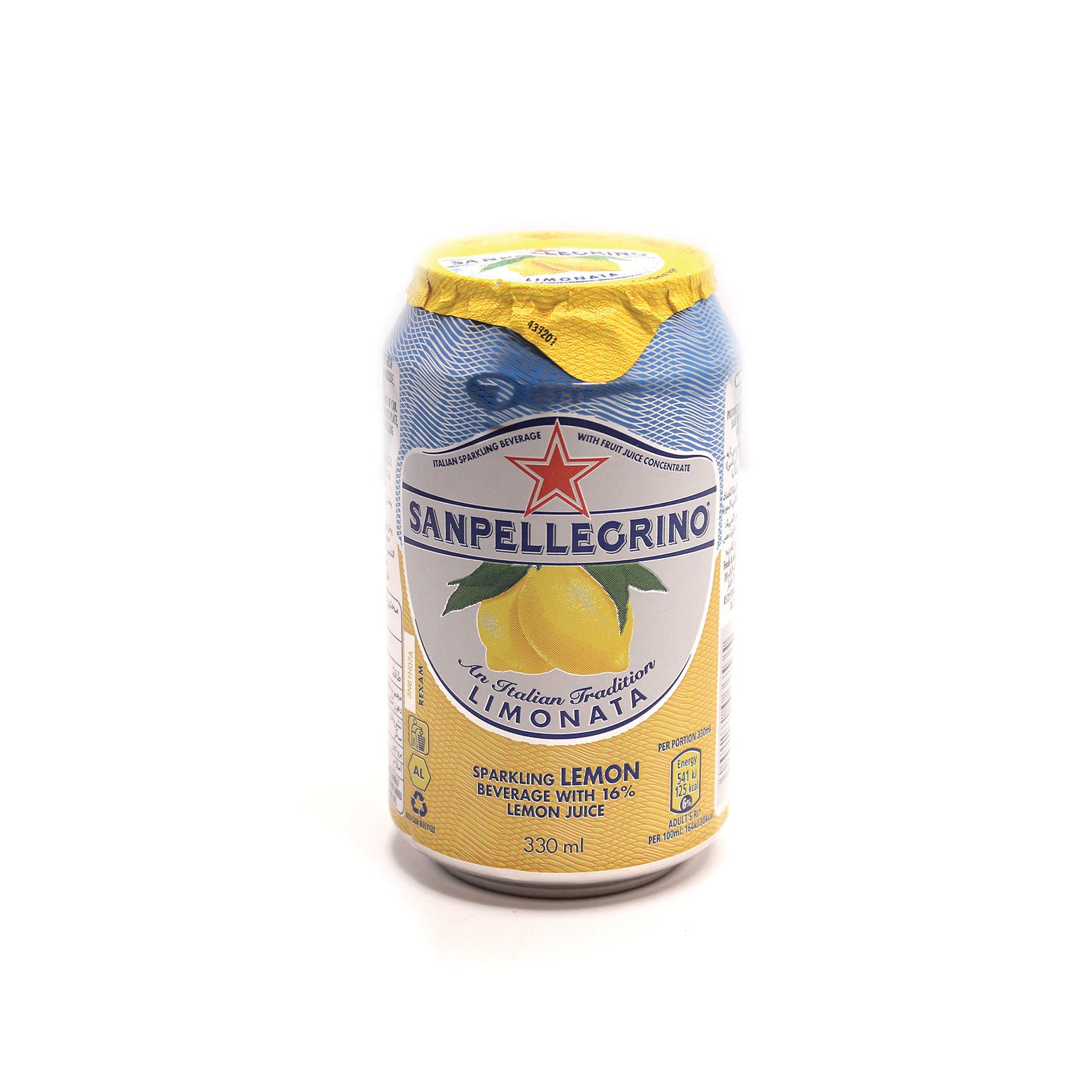 Calories in San Pellegrino Sparkling Lemon - Menu With Nutrition There are 140 calories in 1 can (330 ml) San Pellegrino Sparkling Lemon; click to get full nutrition facts and other serving sizes.
