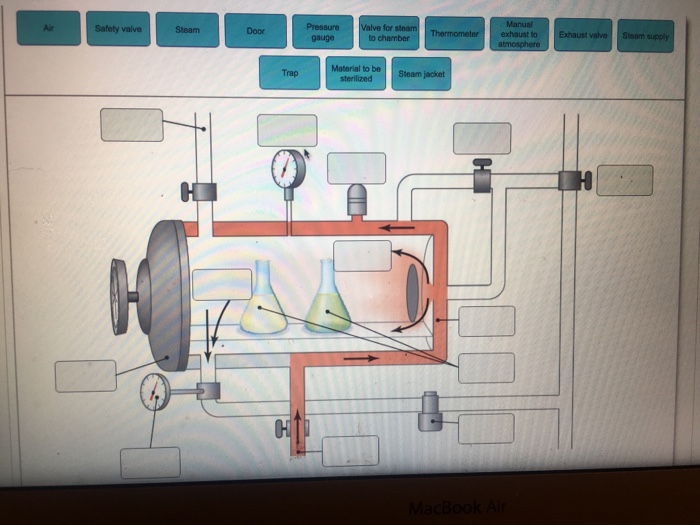 41 label the schematic of the autoclave with the correct descriptions. drag the appropriate labels to their respective targets.